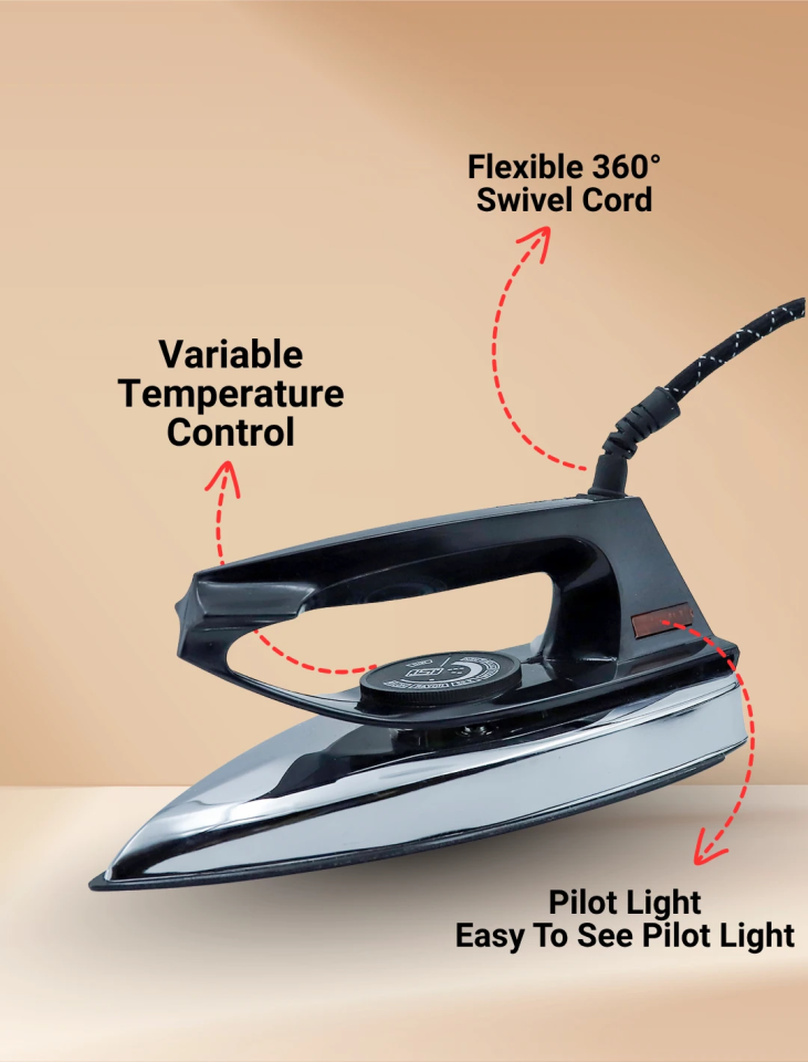 Standard Entry-Level Dry Iron 850W: Students like it as it is lightweight and works well on a light day.